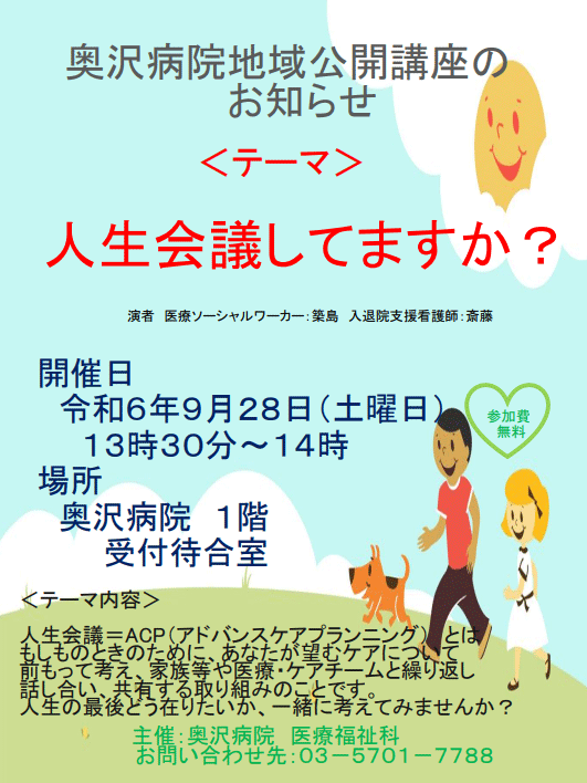 • 演者:奥沢病院 医療ソーシャルワーカー:築島、入退院支援看護師:斎藤